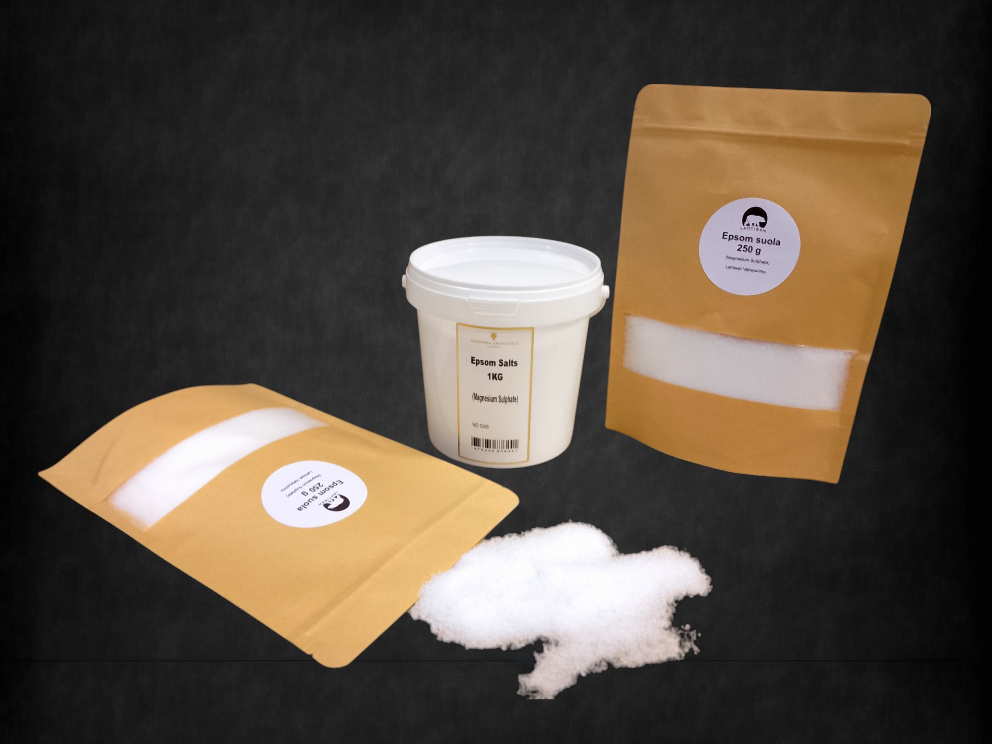 Rentouttava, stressiä vähentävä ja kuoriva Epsom suola kylpyihin ja kylpypommeihin.