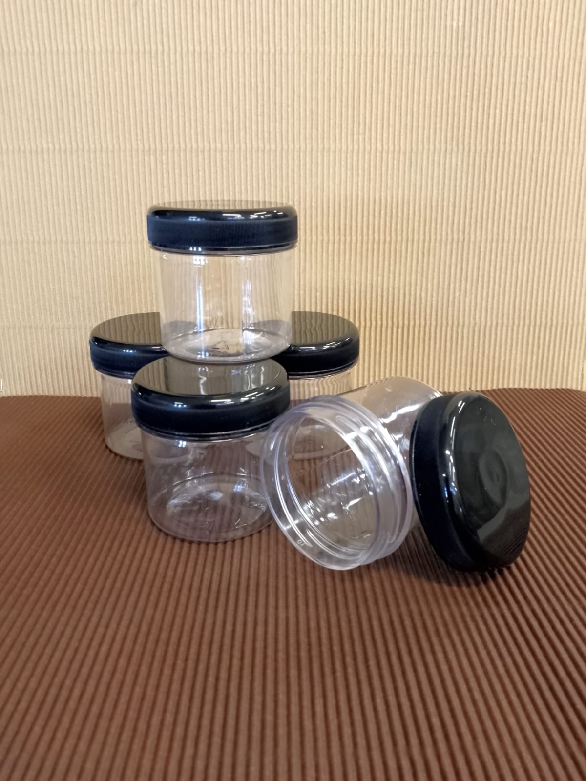 Voidepurkki mustalla kannella pet-muovia. Korkeus 6 cm, tilavuus 100 ml. Myydään kappaleittain.